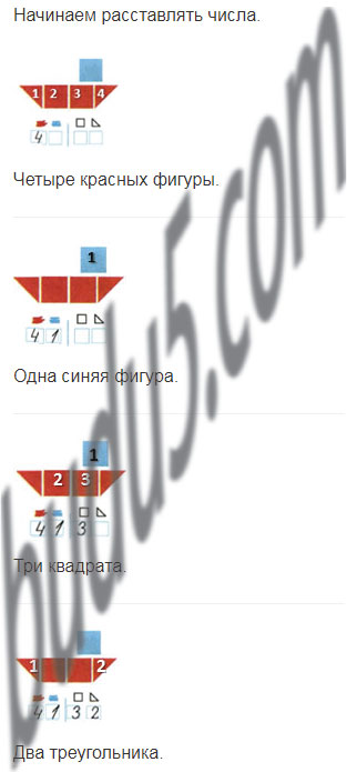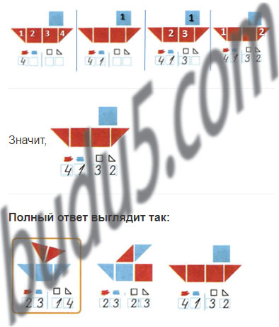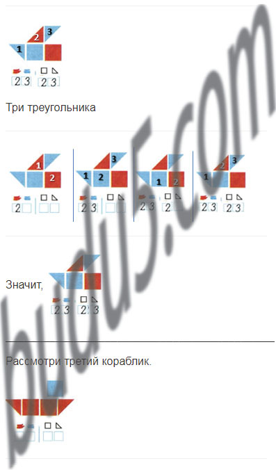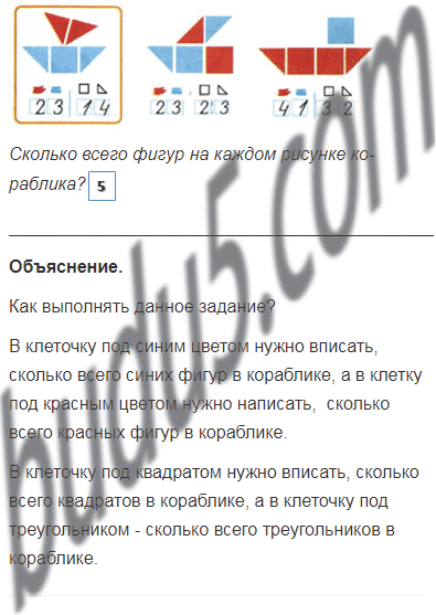 Сколько всего фигур на каждом рисунке кораблика?
