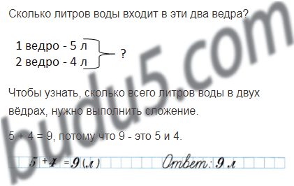 6. В ведро входит 5 л воды, а во второе — на 1 л меньше.