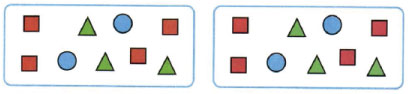 4. Дорисуй или зачеркни кружки, квадраты или треугольники так, чтобы их стало поровну.