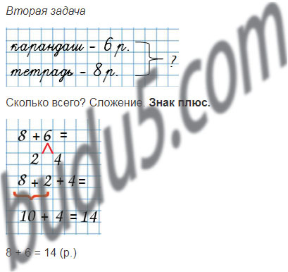 3. Дополни условие задачи числом и реши её. Тетрадь стоит 8 р., а карандаш на