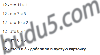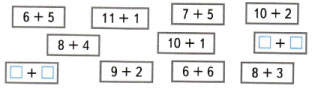 2) Запиши на свободных карточках новые суммы с ответами 11 и 12.
