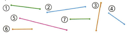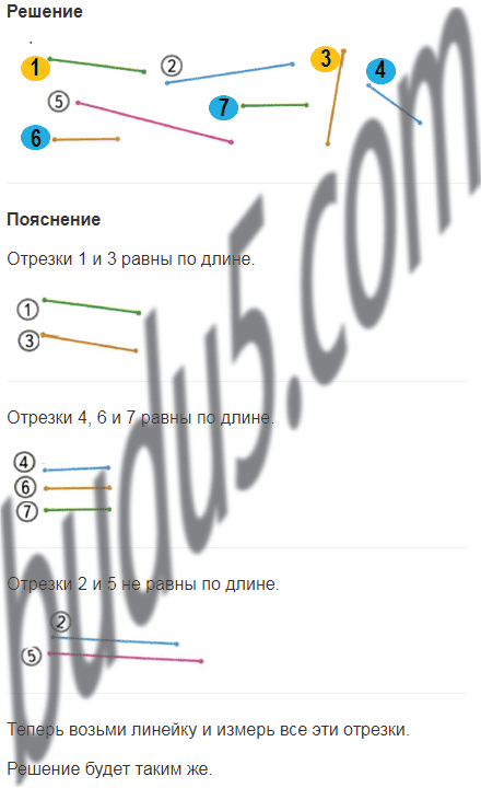 Раскрась до измерения одним цветом кружки с номерами равных отрезков.