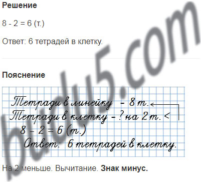 У Лены 8 тетрадей в линейку, а в клетку на 2 тетради меньше. Сколько у Лены тетрадей в клетку?