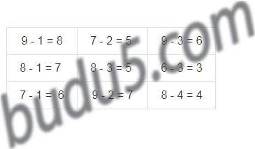 | 9 - 1 = | 7 - 2 = | 9 - 3 = |