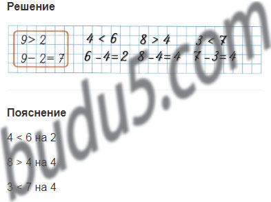 На сколько 9 больше, чем 2? 4 меньше, чем 6? 8 больше, чем 4? 3 меньше, чем 7?