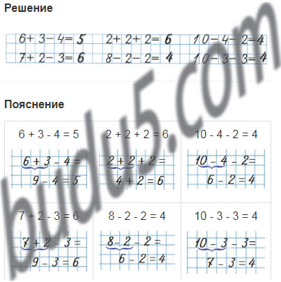 | 6 + 3 - 4 = | 2 + 2 + 2 = | 10 - 4 - 2 = |
