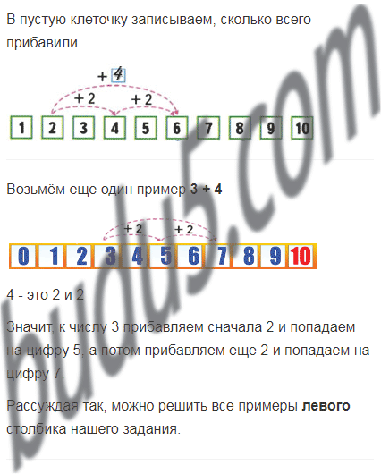 Помни: чем правее число, тем оно больше, а чем левее число, тем оно меньше. Значит, при сложении - шагаем вправо, а при вычитании - влево.