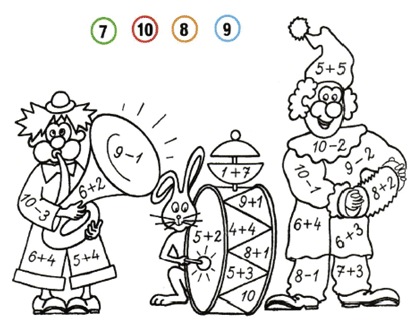 Примеры с ответом 10 раскрась красным цветом.
