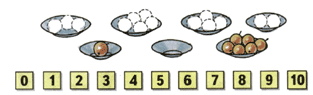 Соедини число с количеством предметов на тарелке.