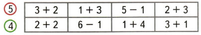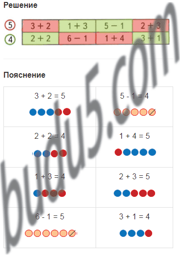 Раскрась карточки с ответом 5 красным цветом, а карточки с ответом 4 - зелёным.