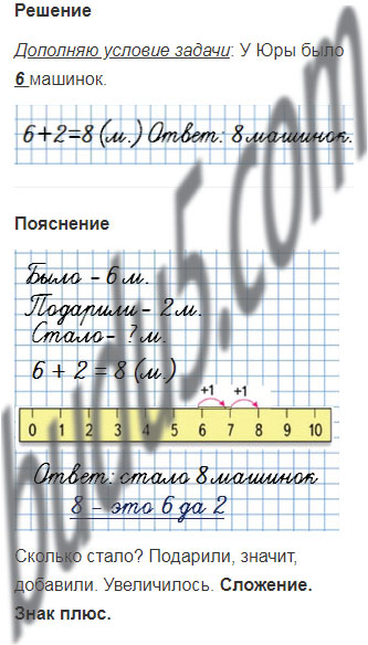 машинок. Ему подарили ещё 2 машинки. Сколько машинок стало у Юры?