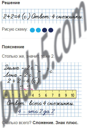 Дима вырезал из бумаги 2 снежинки, и Лена вырезала столько же. Сколько всего снежинок вырезали Дима и Лена?