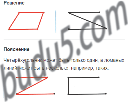 Соедини точки по линейке, чтобы получились четырёхугольник и ломаная линия из трёх звеньев.
