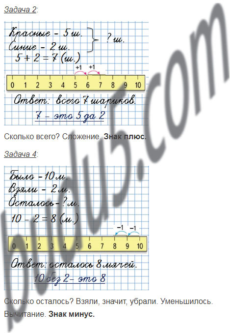 2. В связке 5 красных шариков и 2 синих. Сколько всего красных и синих шариков в этой связке?