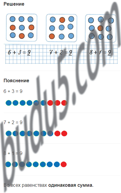 Проследи, как меняются рисунки слева напрво. По каждому рисунку составь и запиши равенство.