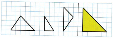 Из каких двух частей можно составить треугольник, который начерчен справа? Раскрась их.