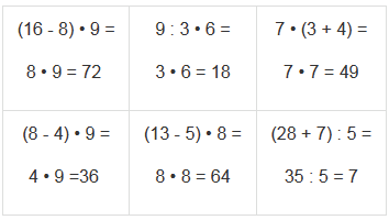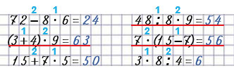 Вспомни порядок выполнения действий при нахождении значения числовых выражений со скобками и без них.