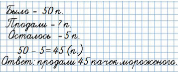 122. Продавец получил на базе 50 пачек мороженого. Через 2 часа у него осталось только 5 пачек. Сколько пачек мороженого он продал за два часа?