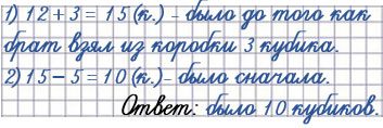 1) 12 + 3 = 15 (к.) - было бы, если бы брат не брал из коробки 3 кубика.