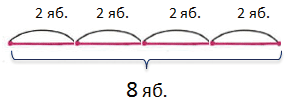 2) Восемь яблок разложили поровну на 4 тарелки. Сколько яблок на одной тарелке?