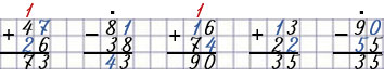На месте единиц в сумме уже записано число 3 и 1 десяток запоминаю (пишу сверху над десятками).