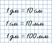 Повтори, сколько сантиметров в одном дециметре, сколько миллиметров в одном сантиметре, сколько дециметров в одном метре.