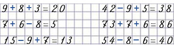 | 15 - 9 + 7 = 6 + 7 = 13 | 54 - 8 - 6 = 46 - 6 = 40 |