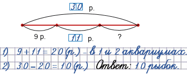 В трёх аквариумах 30 рыбок. В первом аквариуме 9 рыбок, а во втором — 11. Сколько рыбок в третьем аквариуме?
