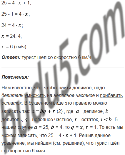 Турист должен преодолеть маршрут длиной 25 км. После того как он шёл 4 ч с одной и той же скоростью, ему осталось пройти 1 км. С какой скоростью шёл турист?