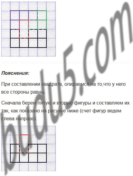 Используя четыре из пяти изображенных на рисунке 153 фигур, составьте квадрат.