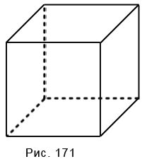 Вычислите площадь поверхности и сумму длин всех рёбер куба (рис. 171), ребро которого равно 5 см.