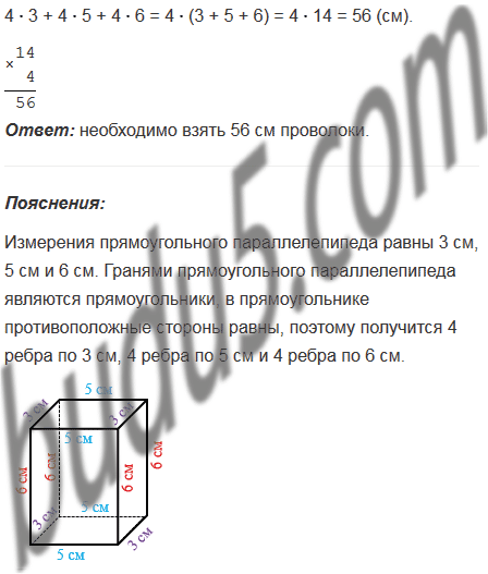 Сколько сантиметров проволоки необходимо для изготовления проволочного каркаса прямоугольного параллелепипеда, измерения которого равны 3 см, 5 см и 6 см?