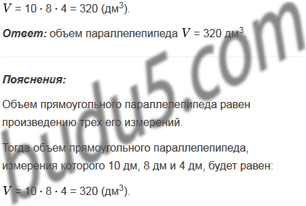 Чему равен объем прямоугольного параллелепипеда с измерениями 10 дм, 8 дм и 4 дм?