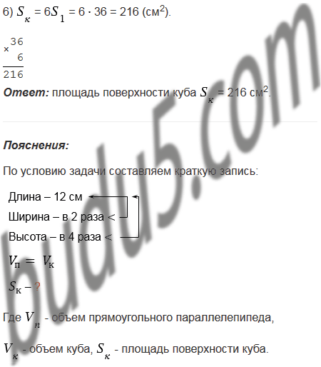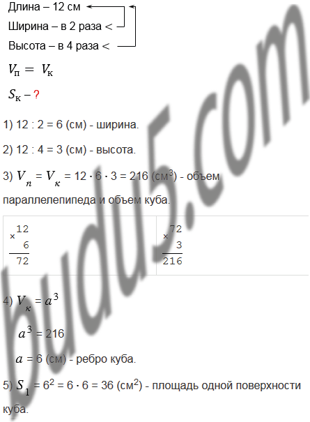 Куб и прямоугольный параллелепипед имеют равные объемы. Найдите площади поверхности куба, если длина прямоугольного параллелепипеда равна 12 см, что в 2 раза больше ширины и в 4 раза больше высоты параллелепипеда.