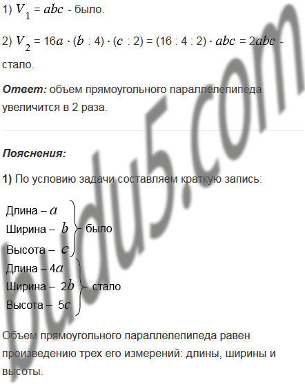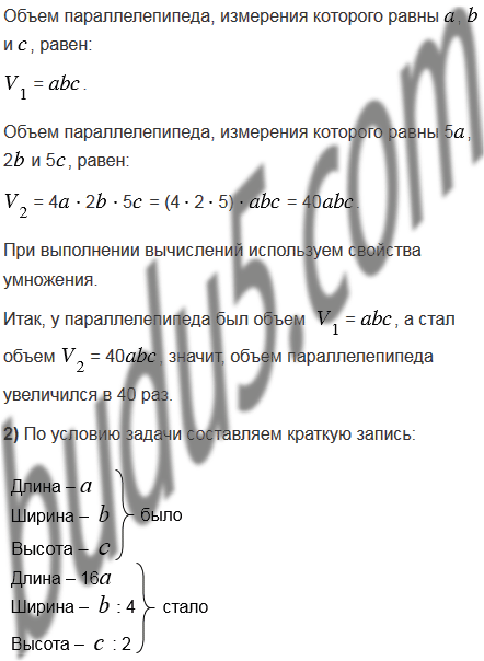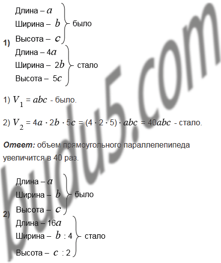 1) длину увеличить в 4 раза, ширину - в 2 раза, высоту в 5 раз;