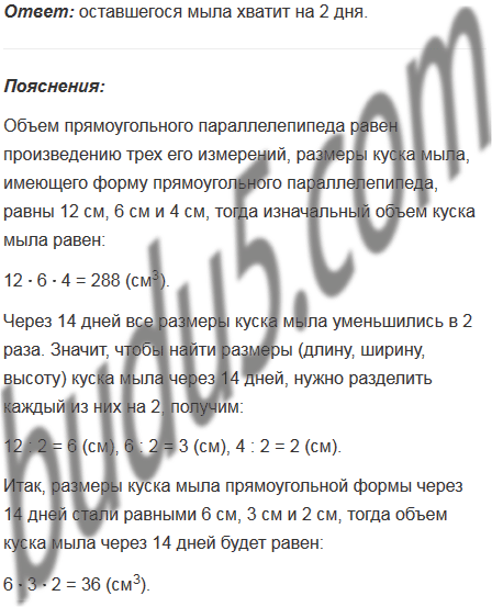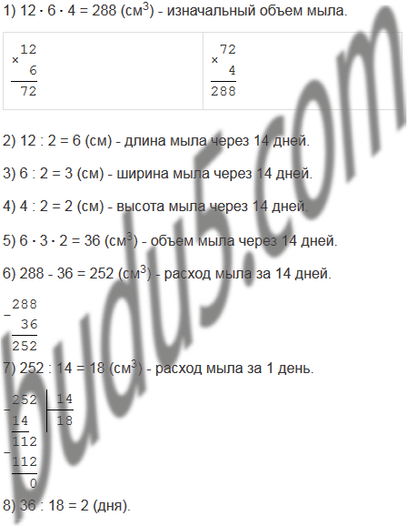 Размеры куска мыла, имеющего форму прямоугольного параллелепипеда, равны 12 см, 6 см и 4 см. Каждый день используют одинаковую массу мыла. Через 14 дней все размеры куска мыла уменьшились в 2 раза. На сколько дней хватит оставшегося куска мыла?