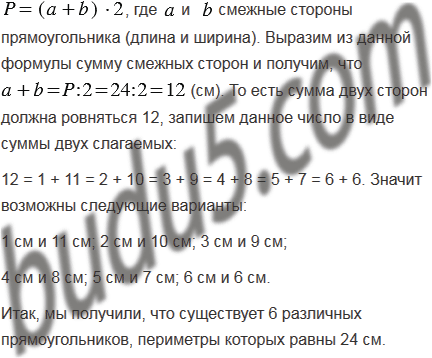 Сколько существует различных прямоугольников, периметры которых равны 24 см, а длины сторон выражены целым числом сантиметров?
