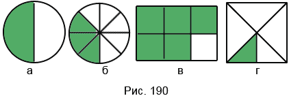 Запишите дробью, какая часть фигуры, изображённой на рисунке 190, закрашена.