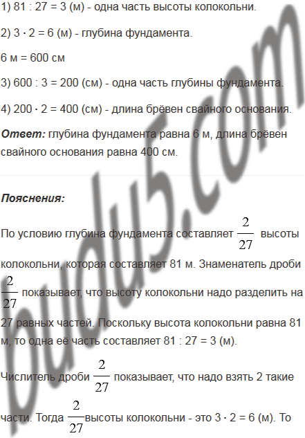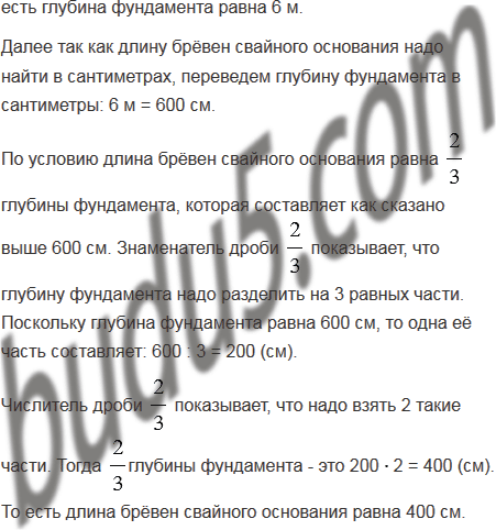 глубины фундамента. Вычислите глубину фундамента колокольни (в метрах) и длину свай (в сантиметрах), если высота колокольни равна 81 м.