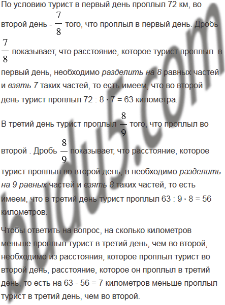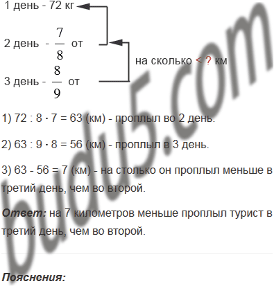 того, что проплыл во второй. На сколько километров меньше проплыл турист в третий день, чем во второй?