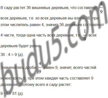 В саду растет 36 вишневых деревьев, что составляет всех деревьев. Сколько деревьев растет в саду?