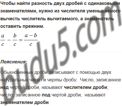 Сформулируйте правило вычитания двух дробей с одинаковыми знаменателями.