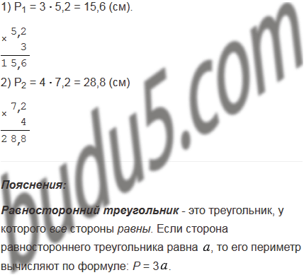 1) периметр равностороннего треугольника со стороной 5,2 см;