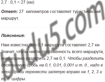 Турист прошёл 2,7 км, что составляет 0,1 туристического маршрута. Сколько километров составляет туристический маршрут?