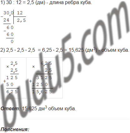 Найдите объём куба, сумма длин всех рёбер которого равна 30 дм.