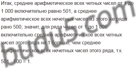 На сколько среднее арифметическое всех четных чисел от 1 до 1 000 включительно больше, чем среднее арифметическое всех нечетных чисел от 1 до 1 000 включительно?