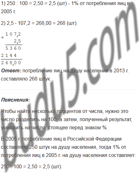 В 2005 г. потребление яиц в Российской Федерации составляло 250 штук на душу населения. В 2013 г. потребление яиц на душу населения составило 107,2% по отношению к 2005 г. Каким было потребление яиц на душу населения в 2013 г.?