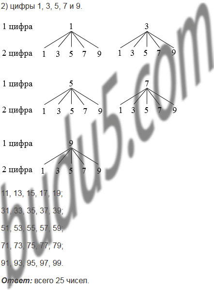 Сколько существует двузначных чисел, для записи которых используются только: 1) цифры 0, 2, 4, 6 и 8; 2) цифры 1, 3, 5, 7 и 9? (Цифры могут повторяться.)