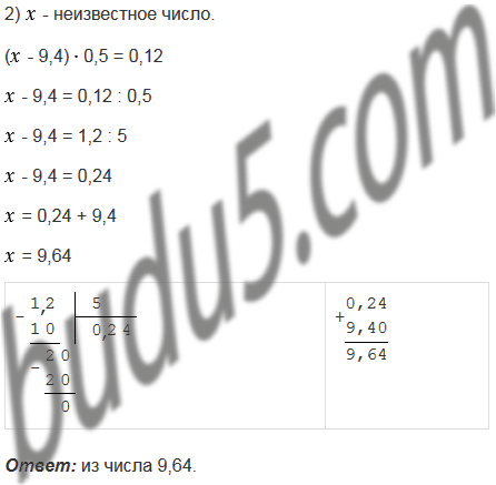 2) Из какого числа надо вычесть 9,4, чтобы произведение полученной разности и числа 0,5 было равным 0,12?