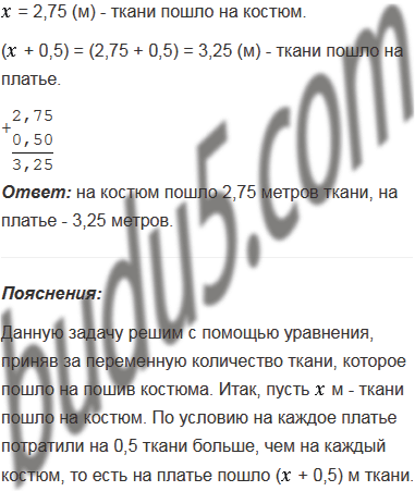 У принцессы Моды было 30 платьев и 24 маскарадных костюма, на пошив которых пошло 163,5 м ткани. На каждое платье потратили на 0,5 ткани больше, чем на каждый костюм. Сколько ткани пошло на одно платье и сколько - на один костюм?